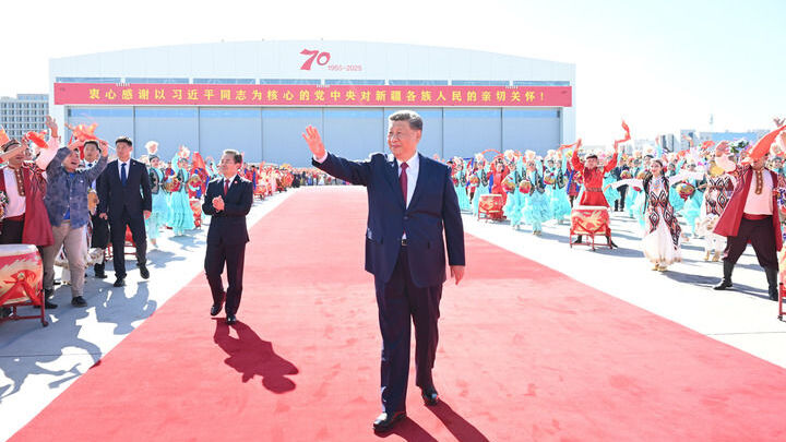 习近平率中央代表团抵达乌鲁木齐出席新疆维吾尔自治区成立70周年庆祝活动