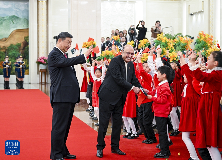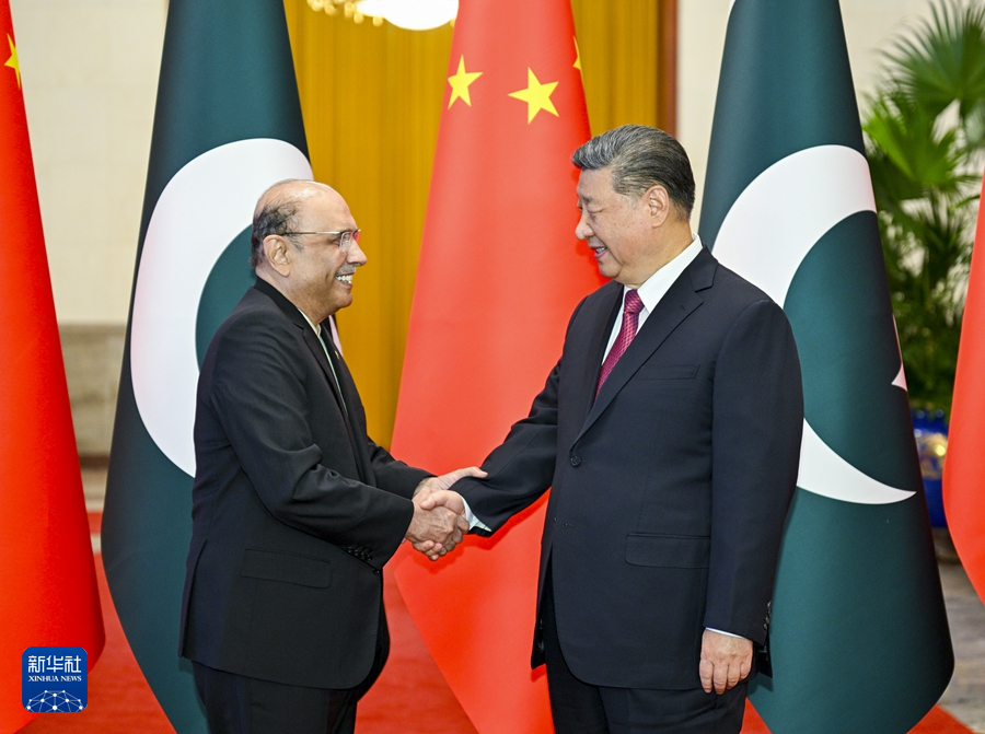 扎尔达里表示,巴基斯坦和中国是亲密邻邦,更是全天候的好朋友、好伙伴。巴中友谊历经风雨,两国人民的心始终紧紧相连。无论形势如何变化,巴方都将毫不动摇同中方站在一起。巴方感谢中方为巴经济社会发展提供无私帮助,愿学习中国成功经验,推动中巴经济走廊和各领域合作高质量发展,助力巴基斯坦实现工业化和现代化。在习近平主席英明指引下,中国在国际事务中发挥越来越大的引领作用,日益成为维护世界和平、稳定、繁荣的重要力量。巴方愿同中方密切配合,坚持多边主义,维护自由贸易,促进两国和广大发展中国家的共同利益。