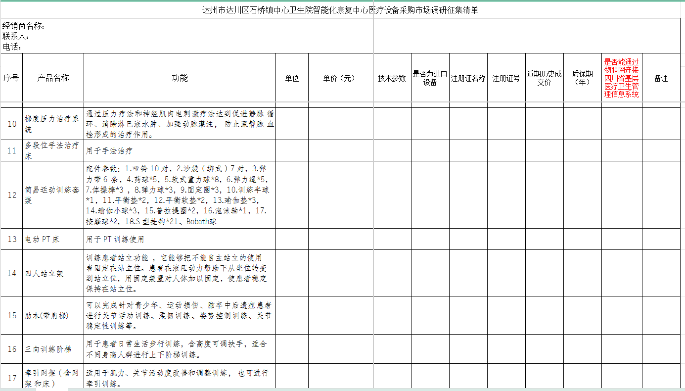 达州市达川区石桥镇中心卫生院智能化康复中心医疗设备采购市场调研征集 -森林舞会正版免费下载