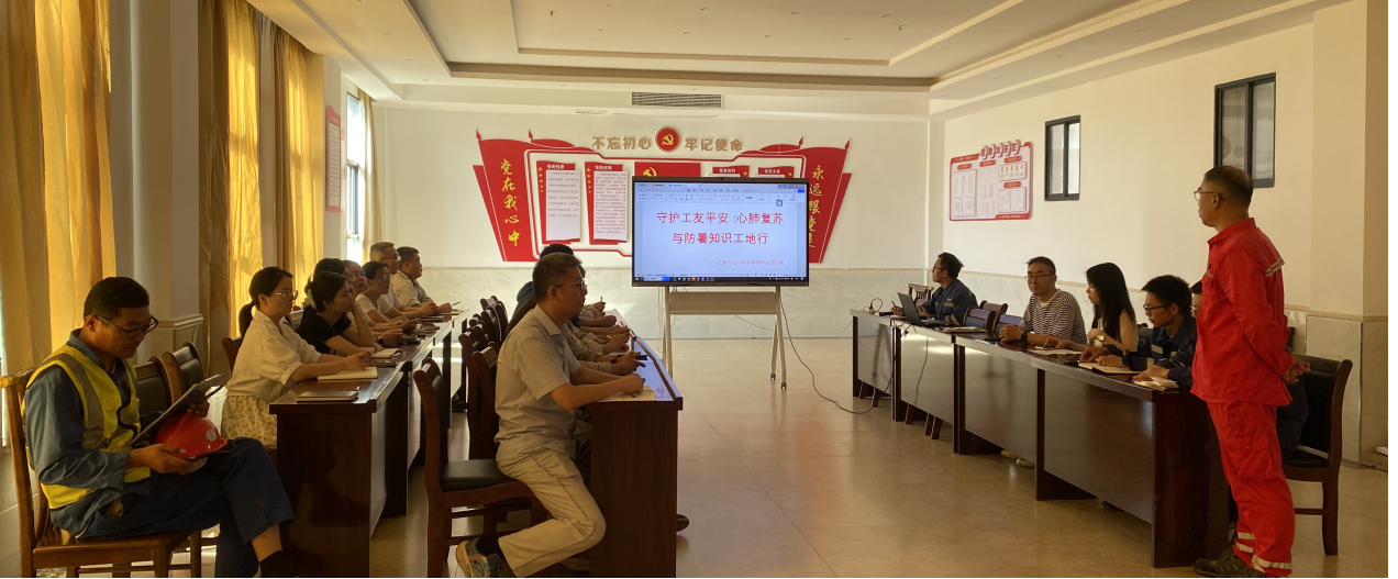 石梯镇火电厂(“双石”热电)项目正处于建设的关键阶段,工人们在露天场地上进行钢筋搬运和设备焊接等作业,夏季温度高,中暑、突发意外等健康安全风险凸显。“这些工人师傅们为石梯镇的发展付出了辛勤努力,此时正值盛夏,他们的健康安全尤显重要,我们卫生院务必全力保障好。” 周治呈书记在筹备会上的一番话,为培训定下了方向——培训内容不能仅停留于理论层面,而要确保这些知识在钢筋水泥的工地上能够真正派上用场。